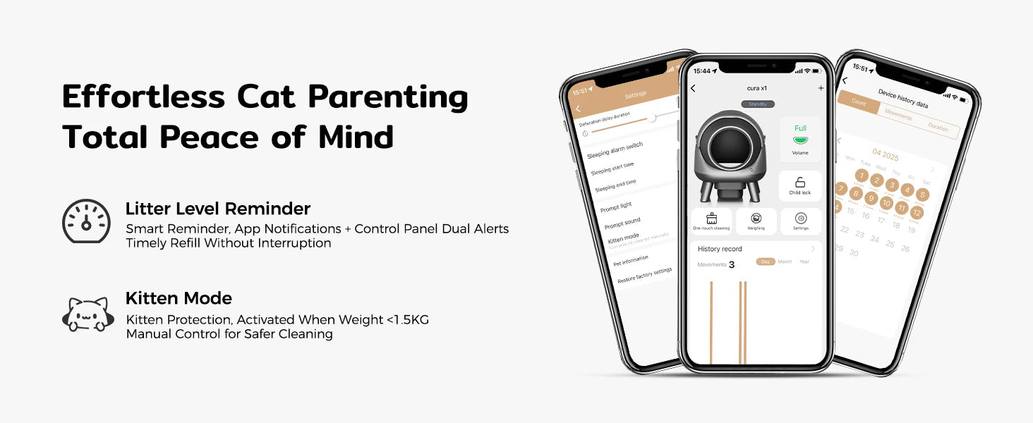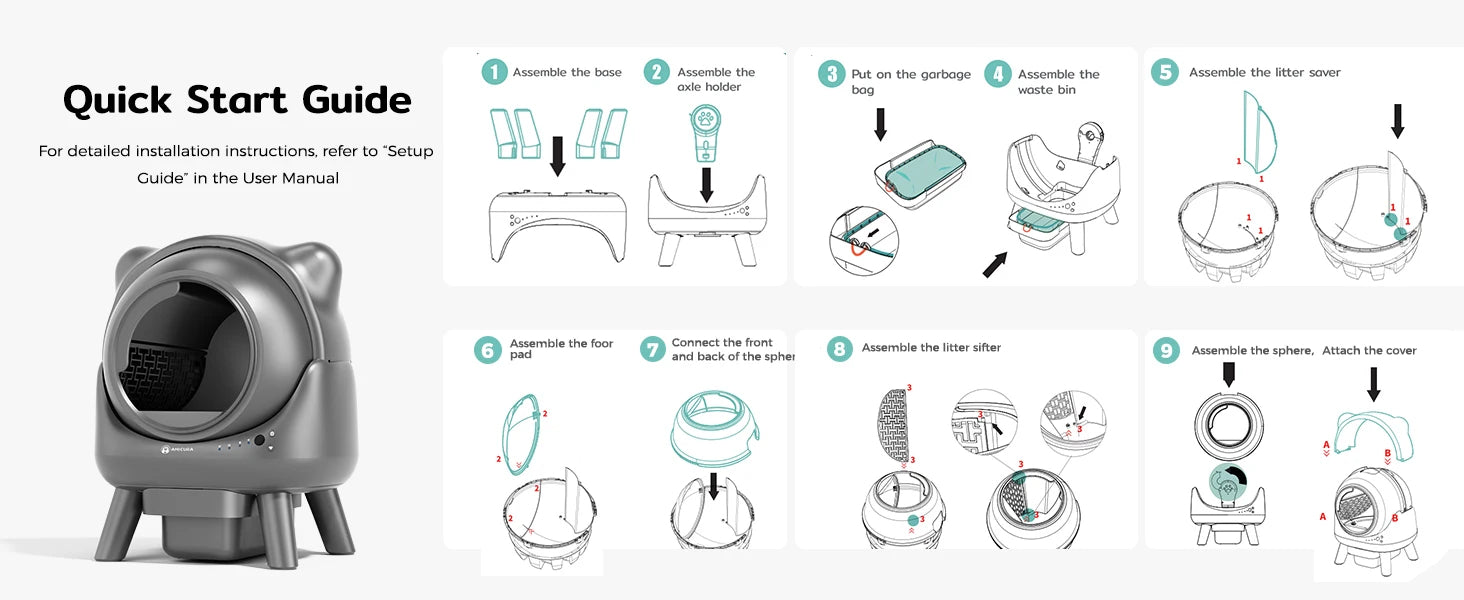 - Støtter alle normalt brukt kattesand typer(Inkludert: Tofu, bentonite, mixed, mineral -kattesand)